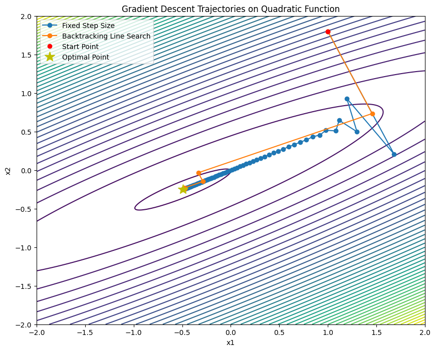 def gradient_descent(start_point, A, b, stepsize_func, max_iter=100):
